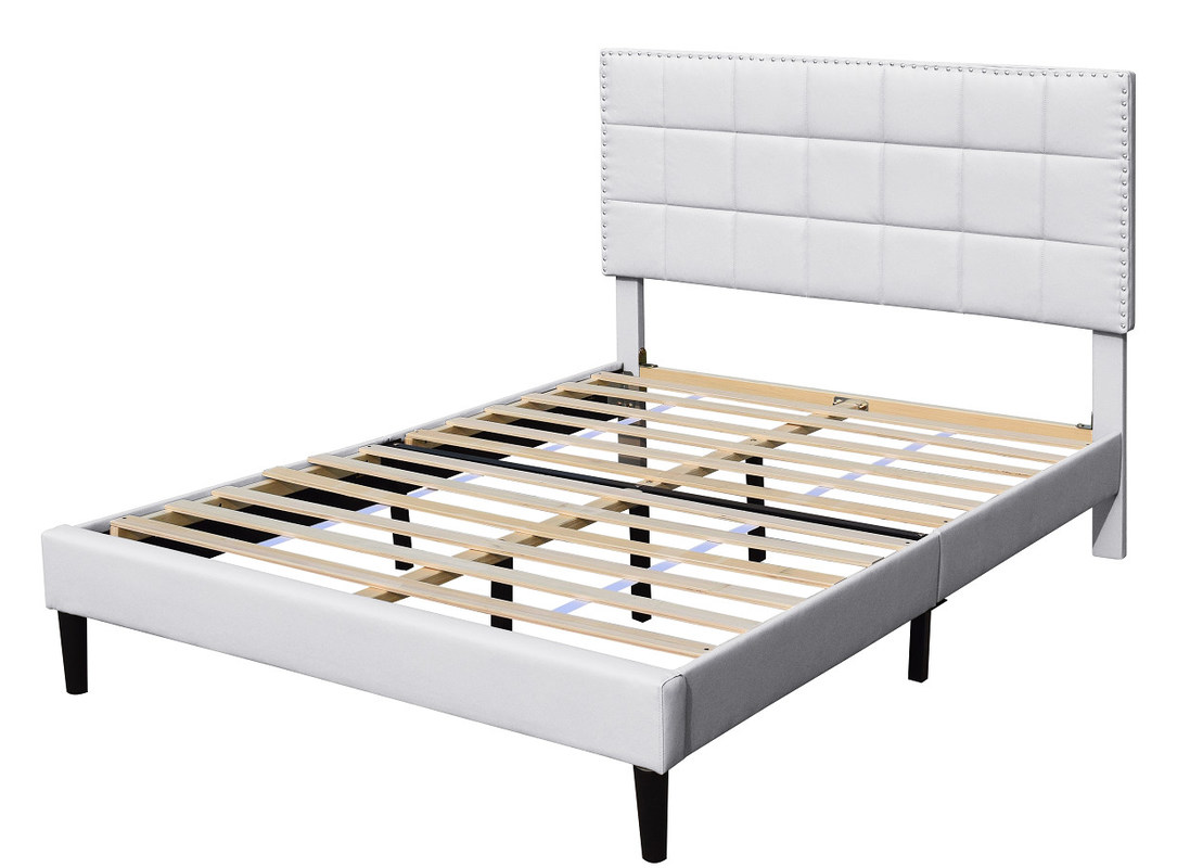 رخيصة إطار سرير PU الحديث مربع اللوح الأمامي معنقدة أبيض 140 x190 سم لأثاث غرفة النوم