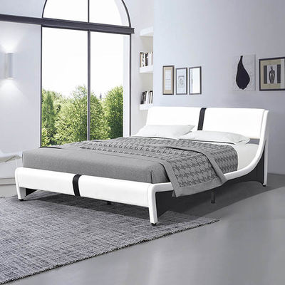 هيكل سرير بجلد صناعي أبيض وأسود LED 140 × 200 سم سرير منجد LED